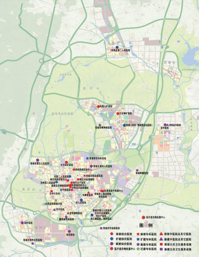 市域層面重在總量預測和醫療服務(wù)體系建立,中心城市層面重在各類(lèi)設施的均衡布局、空間保障、服務(wù)設施延伸。規劃確定了到 2020 年千人擁有 15 床位的發(fā)展目標,確定了優(yōu)先發(fā)展和保障社區基本醫療服務(wù),大力提升綜合醫院和專(zhuān)科醫院的醫療水平和服務(wù)能力的發(fā)展路徑,建立起以社區衛生服務(wù)為基礎的新型城市醫療衛生服務(wù)體系。