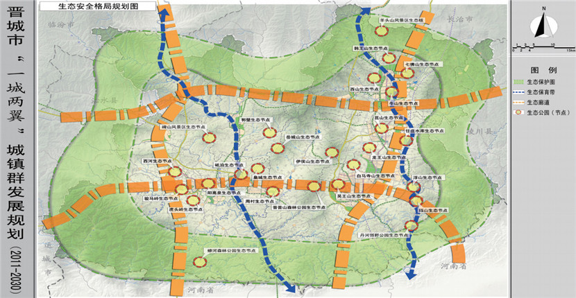 規劃將“一城兩翼”城鎮群作為全市發(fā)展的核心空間,立足山西,承接東部,對接中原,按照“南北強化,東西開(kāi)拓,合縱連橫,區域合作,強核筑屏,全域統籌”的區域協(xié)調發(fā)展戰略,構建了開(kāi)放融合的區域發(fā)展格局。確定了“以煤為基、多元發(fā)展”新型產(chǎn)業(yè)體系,以一區六園為載體,改造提升煤炭、電力、煤化工等基礎型產(chǎn)業(yè),培育壯大煤層氣、現代旅游服務(wù)業(yè)、生產(chǎn)服務(wù)業(yè)等主導型產(chǎn)業(yè),加快發(fā)展高端裝備制造、新能源、新材料等戰略性新興產(chǎn)業(yè)。提出了以土地資源和水資源為導向,以丹河、沁河兩大流域為載體,大分散、小集中、非均質(zhì)、動(dòng)態(tài)平衡的特色化城鎮發(fā)展模式,提升城鎮化質(zhì)量,提高城鎮群的核心競爭力。