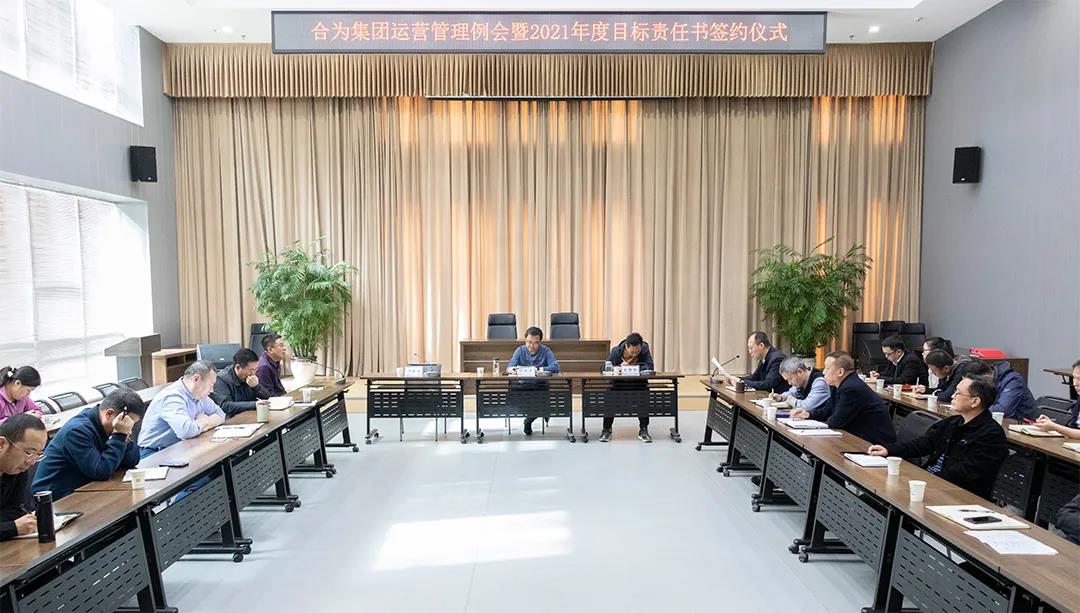 3月28日下午,合為集團舉行運營(yíng)管理例會(huì )暨2021年度目標責任書(shū)簽約儀式。黨委副書(shū)記、副董事長(cháng)、總經(jīng)理吳青革,黨委委員、副總經(jīng)理張曄華出席會(huì )議并講話(huà)。市場(chǎng)經(jīng)營(yíng)部部長(cháng)兼建筑二院院長(cháng)李文瑞主持會(huì )議。各生產(chǎn)部門(mén)負責人、副職及籌備組成員參加本次會(huì )議。